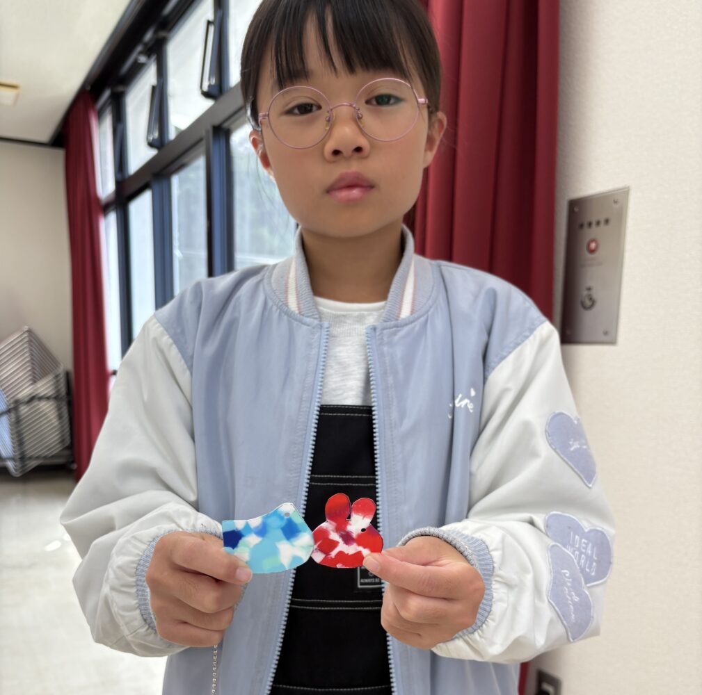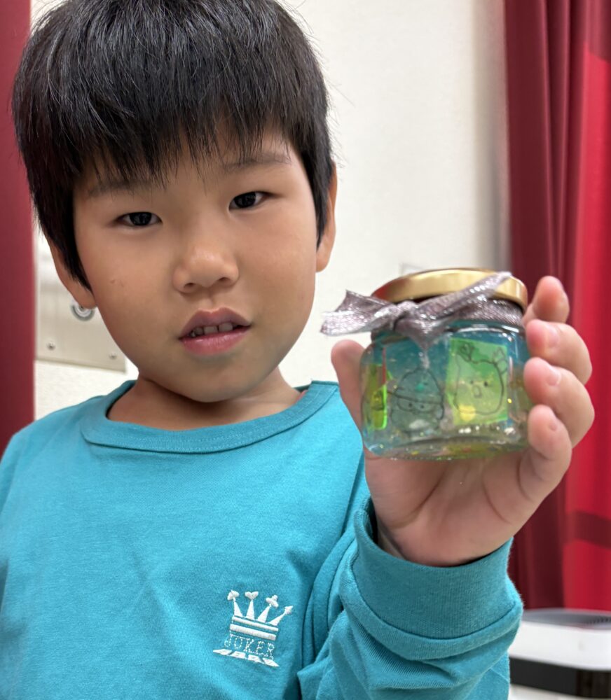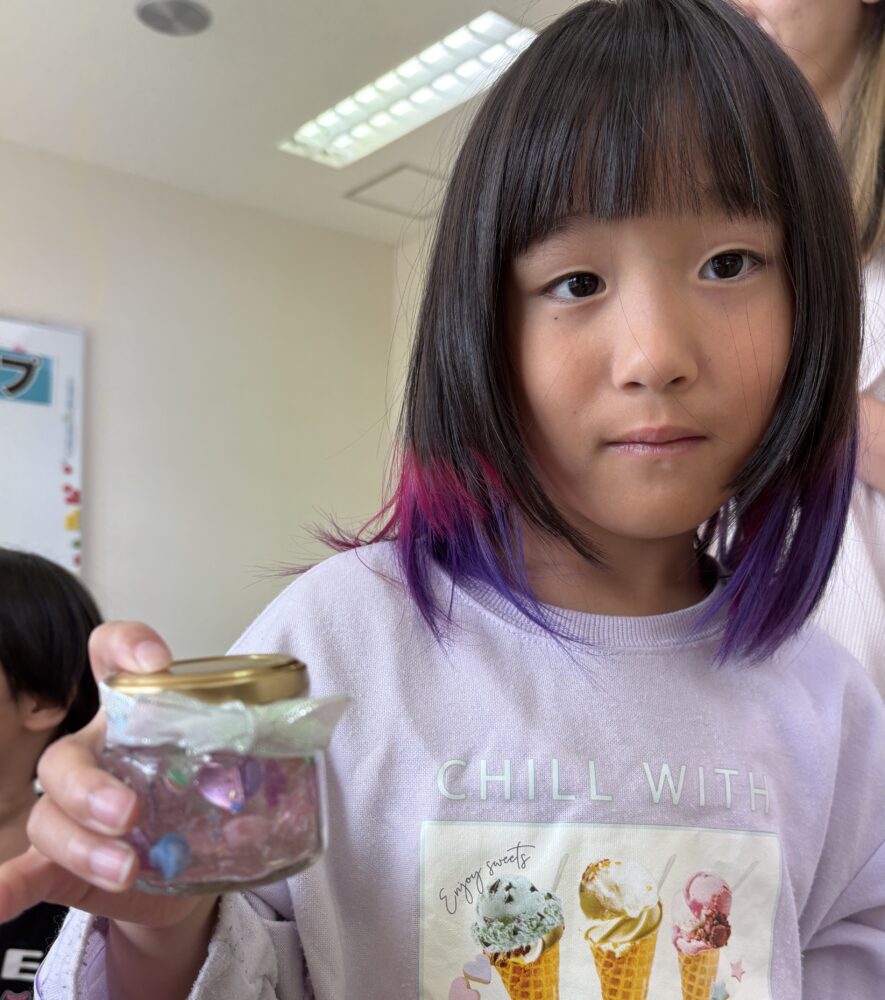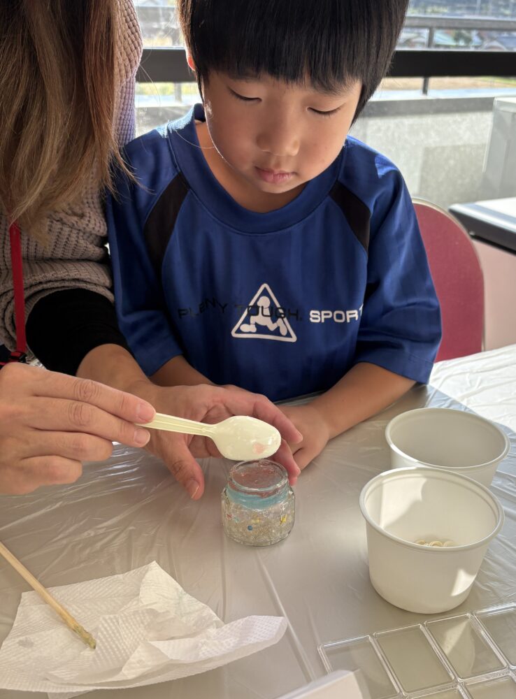 こちらのメニューは、混ぜたり色付けしたりする工程がお菓子作りみたいで楽しいのと、華やかな出来上がりで、インテリアにもなるのに、家にある材料で作れるという、小さな子から楽しめるもの作りです。