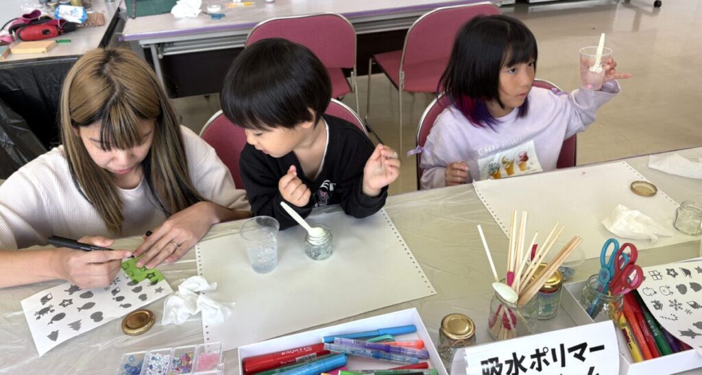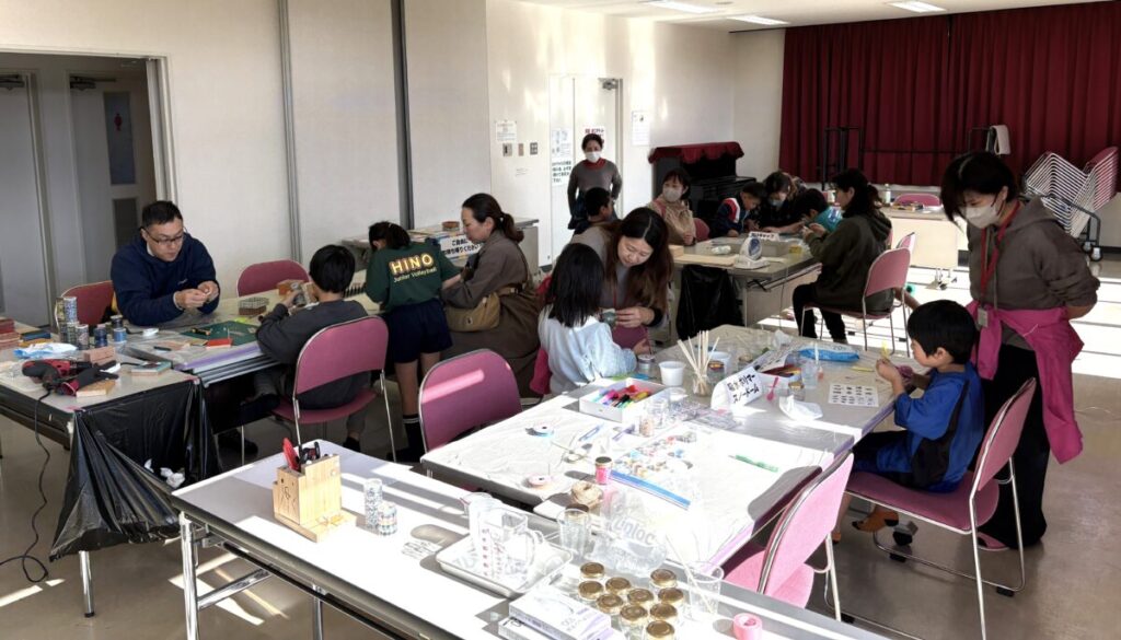2025年11月1日(金)、日野町東桜谷公民館の文化祭にてワークショップを開催させていただきました!毎年恒例となった文化祭のワークショップ、今年は、講師の都合で初日1日のみの出店となりましたが、地域の子どもたちを中心に、今年も大勢の方にご参加いただき、会場は活気に満ち溢れました!