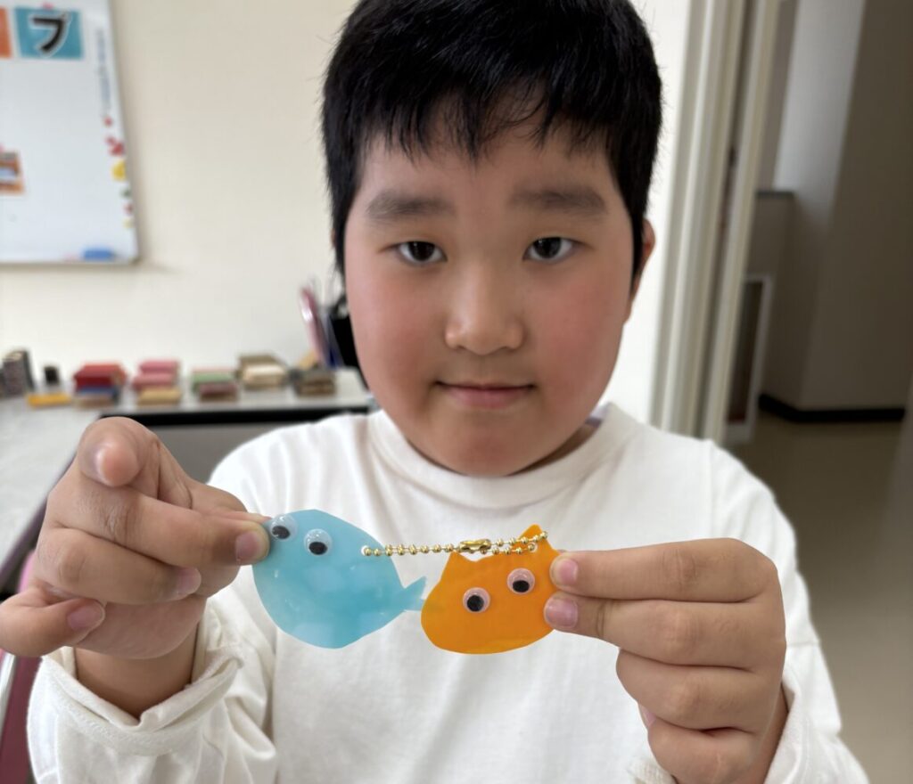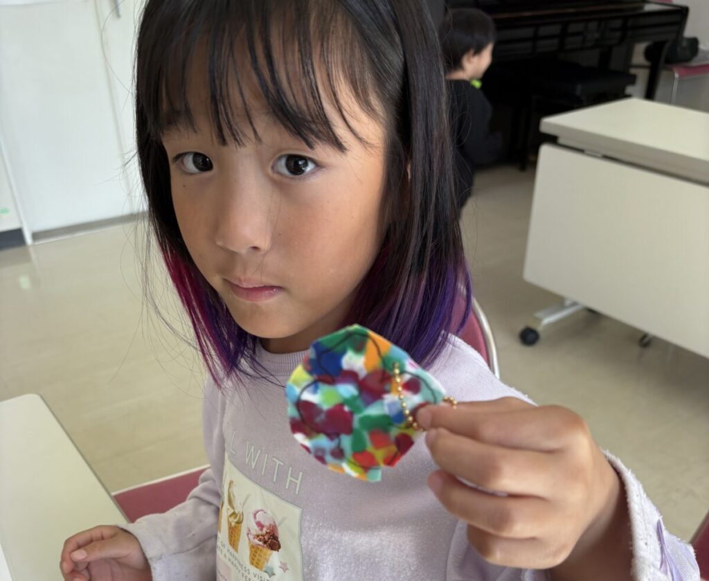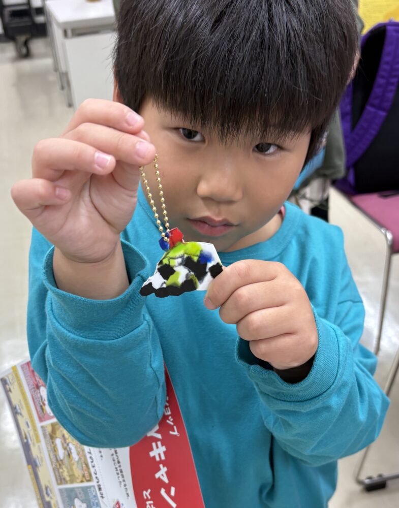 チップの配置を工夫して、パトカーやパンダに挑戦する子や、お母さんにお願いして大好きなウルトラマンを作ってもらう子など、ひとつとして同じものがない特別なキーホルダーがたくさんでき上りました。